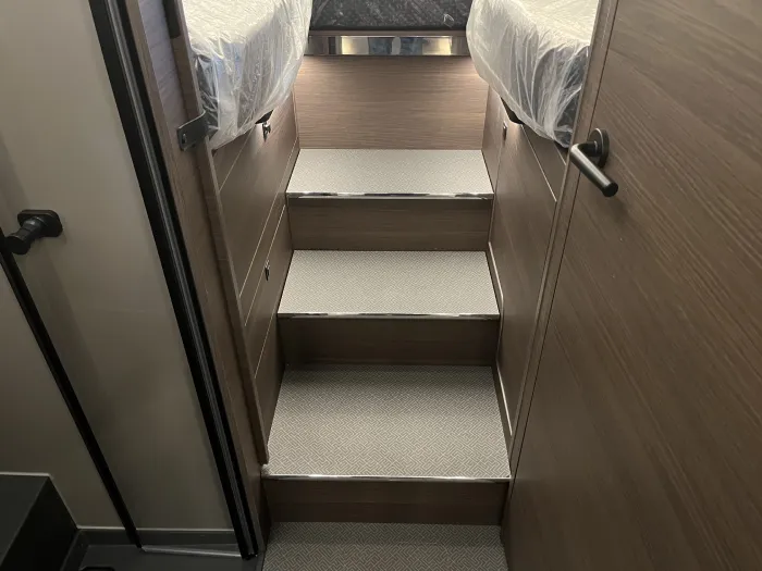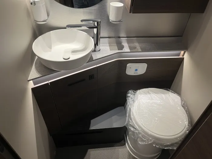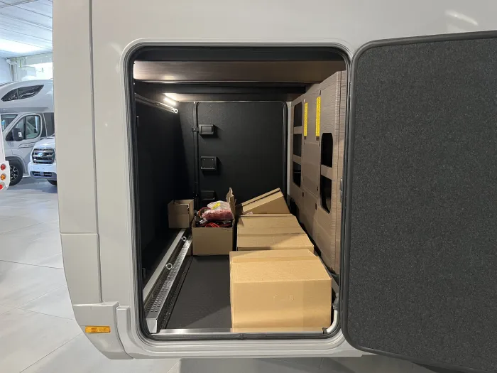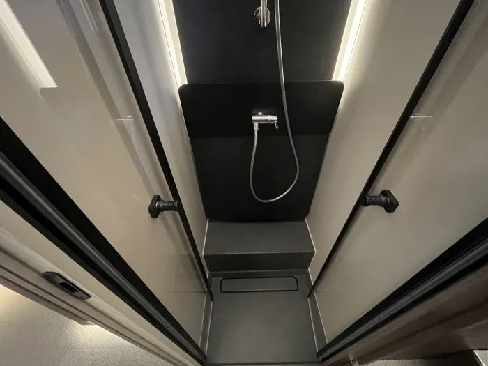 En cuanto a confort térmico, incorpora el sistema de calefacción por agua caliente Alde Compact 3030, con suelo radiante y depósito de aguas grises calefactado, además de aire acondicionado Truma Aventa 2,4 kW, garantizando bienestar en cualquier estación del año.