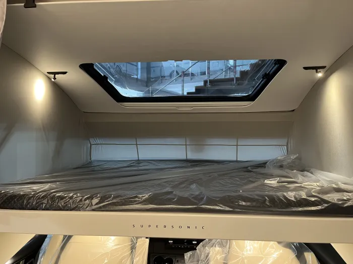En el interior, la SuperSonic 780 DL ofrece un ambiente refinado con mobiliario en acabado Rovere Moro, tapicerías de alta gama y detalles cuidadosamente integrados.