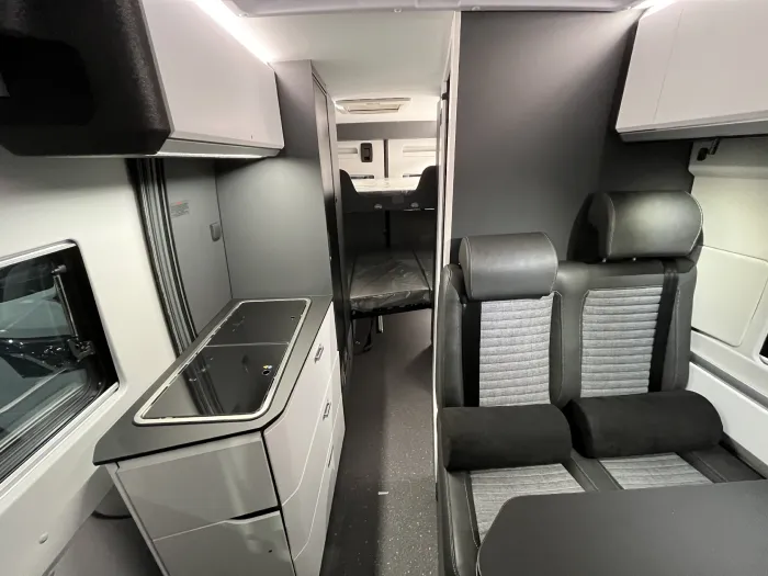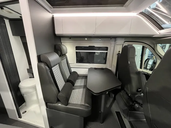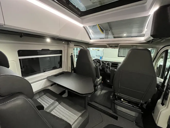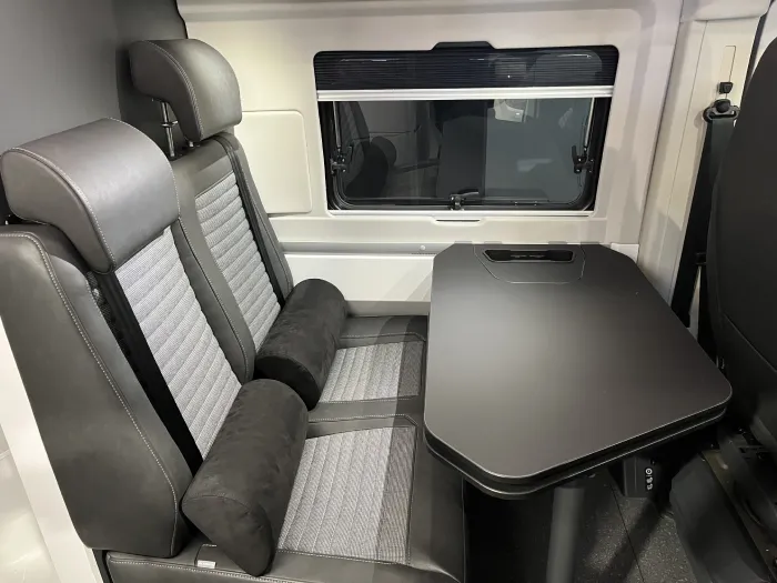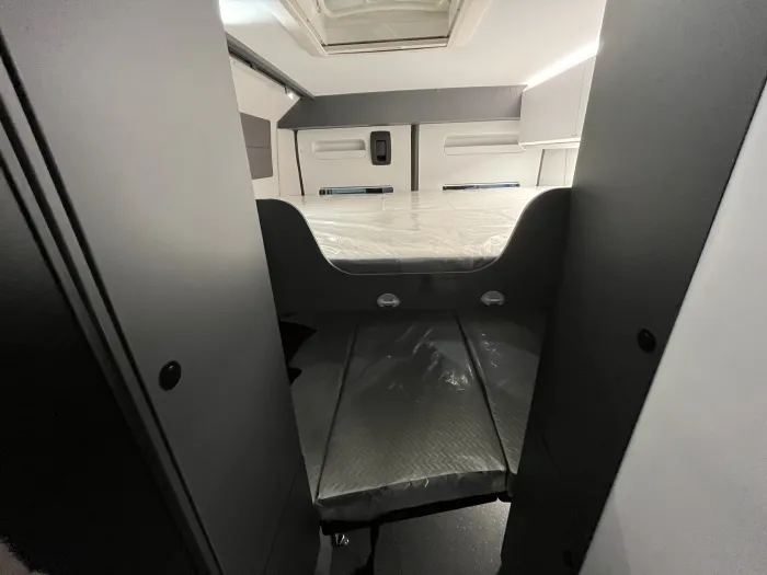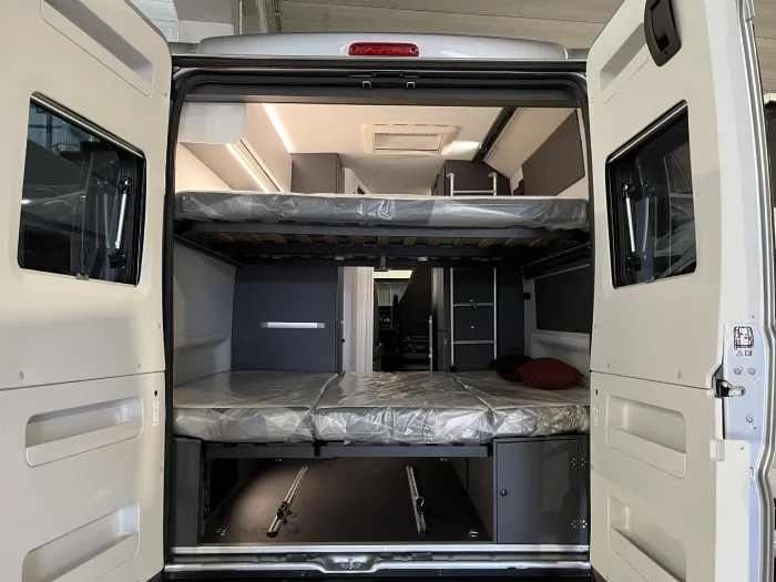 Gracias a su cuidada distribución, la Twin Supreme 640 SPB Family ofrece dos cómodas camas traseras dobles en forma de litera, que permiten dormir cómodamente a cuatro personas sin necesidad de montar ni desmontar el salón, un salón confortable con asientos de cabina giratorios, y soluciones inteligentes que maximizan el espacio habitable sin renunciar al confort propio de una camper premium.