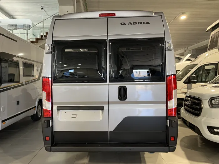 Esta camper Adria destaca por su gran garaje trasero calefactado, ideal para transportar bicicletas, equipaje o material de camping. Dispone de escalón de entrada eléctrico, depósitos de agua de gran capacidad y múltiples soluciones de almacenamiento, ofreciendo una elevada autonomía para viajar sin depender de áreas de servicio.