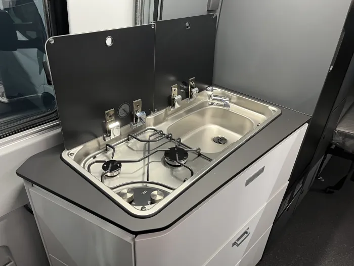 El interior de la Adria Twin Supreme 640 SPB Family está pensado para un uso práctico durante todo el año. Incorpora una cocina monoblock de dos fuegos con encendido eléctrico y frigorífico de compresor, perfecta para viajar con total independencia. El baño completo con ducha, lavabo y WC giratorios permite optimizar el espacio sin sacrificar comodidad.