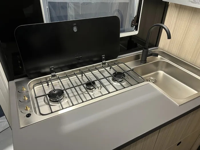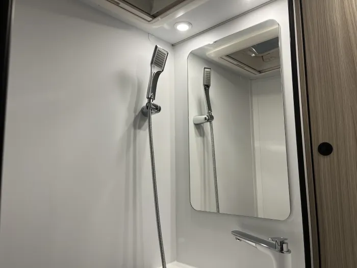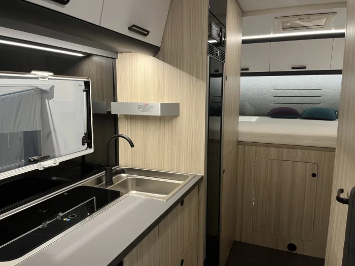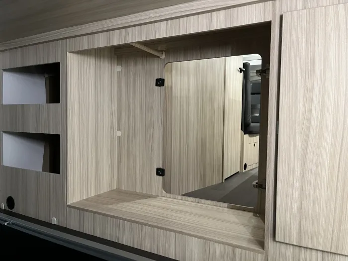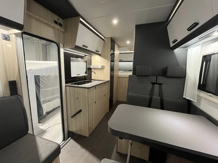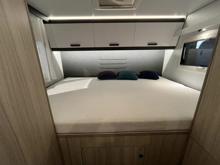 El espacio está perfectamente aprovechado: cuenta con armarios y amplios cajones distribuidos por todo el habitáculo, lo que permite mantenerlo todo ordenado y siempre a mano. Además, el gran garaje trasero incluye una puerta de acceso directo al interior, haciendo el día a día mucho más práctico para toda la familia.