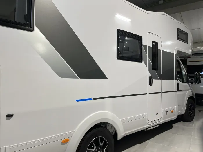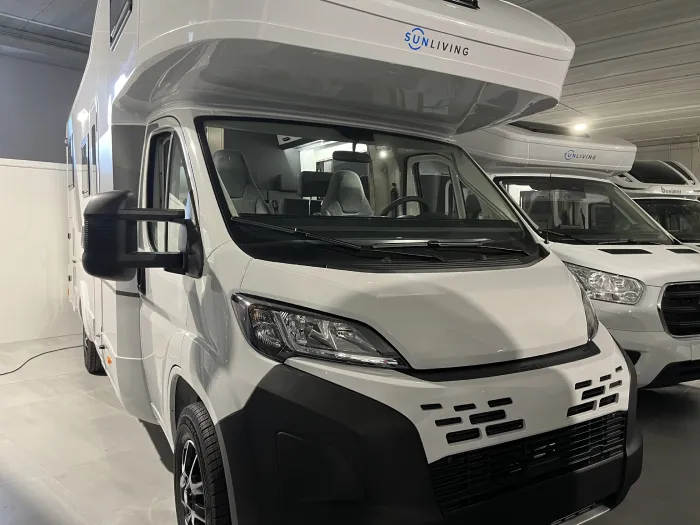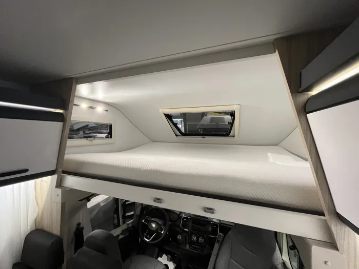 La Sun Living A 75 DP es una espectacular autocaravana capuchina que dispone de 6 plazas para viajar y 6 plazas para dormir. Su distribución consiste en un comedor convertible en cama, una cama trasera transversal y una cama doble en la parte delantera. Gracias a su gran altura interior, esta autocaravana ofrece una increíble sensación de amplitud y confort. Este modelo es muy espacioso e ideal para disfrutar en familia y viajar con total comodidad.